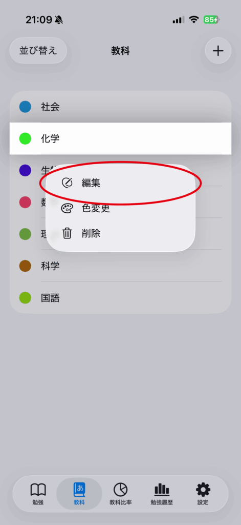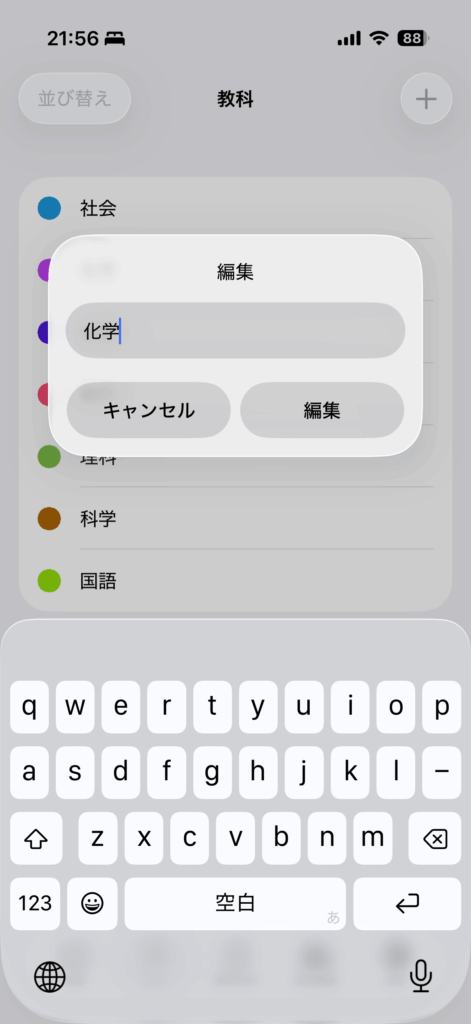 教科名を編集by studytime2022年9月16日2025年11月18日教科名を間違えて入力した場合などに教科名を編集することも可能です教科をロングタップ編集をタップ任意の教科名に変更して登録をタップしてください以上で教科名の編集は完了です
